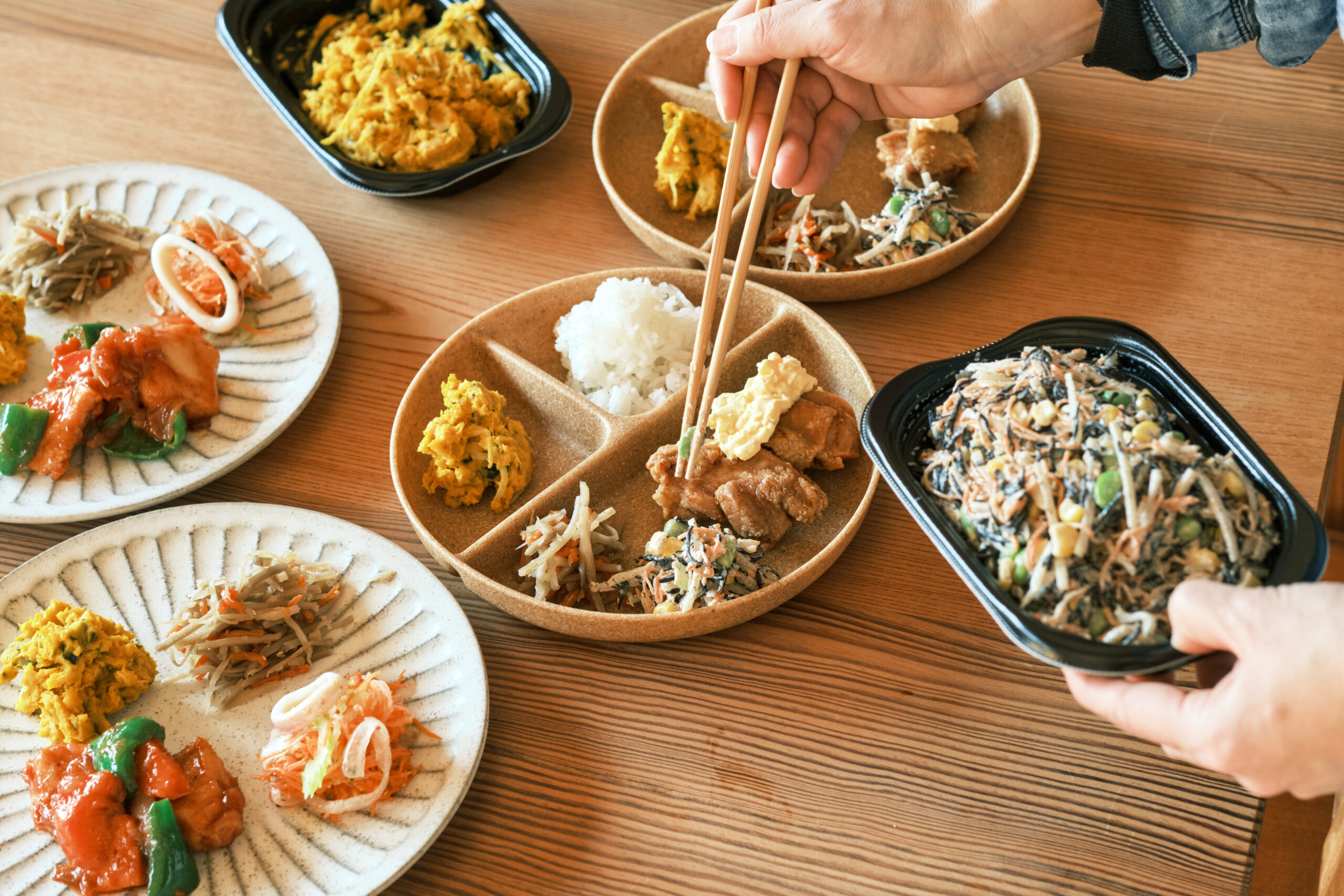 - 帰宅してすぐ食卓に並べるだけ。皿洗いも最小限